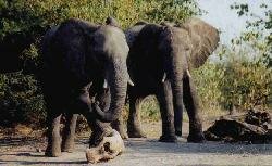 Chobe National Park offers excellent elephant viewing. Numerous breeding herds can be seen along the Chobe and Linyanti Rivers and around Nogatsaa and Tchinga campsites as the winter deepens. The water-hole at Savuti (also spelled Savute) attracts large numbers of bulls which one can usually approach more savely than the bredding herds. Moremi and Okavango also boast large numbers of elephant which can, however, prove more elusive than their counterpats in Chobe due to the denser vegetation.