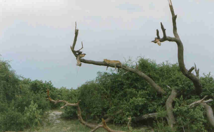Found throughout most of Africa and Asia, the leopard inhabits a variety of regions, such as tropical forests, brush and scrublands, rocky hillsides or the high, cold slopes of the Himalayas. Powerful and agile, the leopard is a deadly and efficient hunter. It stalks its prey, creeps to within a few metres, then leaps or dashes at the victim, which is dispatched by a bite in the neck or smothered by a throat bite. In Botswana the leopard can be seen in any wilderness area, usually early morning or late evening (night time where permissible to drive at night). Khwai, Mombo and Xaxanaka in Moremi, Savuti and Serondela in Chobe and Nxai Pan. Their most common prey are hoofed animals, but they will eat dogs and monkeys as well. The well-known "black panther," once thought to be a different species, is actually just a dark leopard.