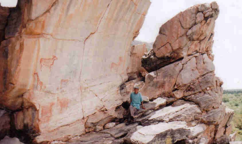 The hills are the subject of many myths and legends. To the !Kung San they are the bith place of man, the tomb of the gods and the home of the serpent monster. The Tsodilo group comprises four indivudual hills, the largest of which is known by the San as the Male hill. Approximately one kilometre beyond this is a conglomeration of smaller outcrops which are collectively known as the Female hill (approx. 250 metres high) and further away is the Child. The fourth and smallest hill is not named.