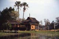 Set under lush palms of the Okavango Delta, Gunn’s Camp has seven Kenyan-style tents and a thatched honeymoon chalet. Each tent at Gunn’s Camp is furnished with twin beds and en suite bath and toilet facilities.