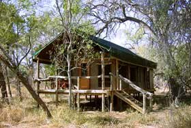 Classically simple yet effective, is the impression you get at Motsentsela Tree Lodge, but it is not always as simple as you think to achieve that impression. For example, who would have thought of looping calico curtains onto a metal rod across the flyscreen windows of a walk-in safari tent. The effect is homely and comforting. The large bed is plied with soft cushions on top of crisp white linen, that just makes you want to leap on it. Motsentsela Tree Lodge safari tents are designed with the bed centrally positioned against a false wall, facing out towards the African bush. Bedside tables and wall mounted attractive reading lights create a feeling of permanency, as does the free standing colonial bath tub and double sinks on the reverse of the wall. This clever design gives the canvas safari room a spacious and airy feel, while providing more home comforts than you might expect. Additional thought has gone into the closed off toilet and outside reed-enclosed shower. The high canvas walls are set upon a wooden floor scattered with coir mats, which leads out onto your own private deck. The most recent addition to Motsentsela Tree Lodge are the two new thatched honeymoon safari suites set discreetly the trees, offering a bit more luxury and privacy.