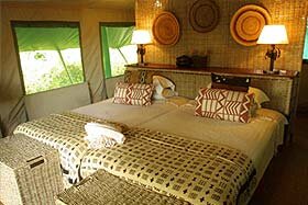 Accommodation in Pom Pom Camp is in six safari tents with roofless en suite shower and flush toilet for a true bush atmosphere. Each Pom Pom Camp tent has a private verandah with a good view of an Okavango Delta lagoon in front of Pom Pom Camp where hippopotamuses like to frolic.
